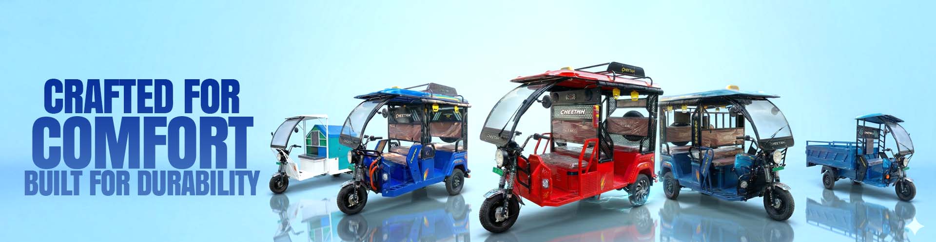 | Rear Suspension | Leaf Spring + Rear Shocker 10" | Smooth ride quality |
